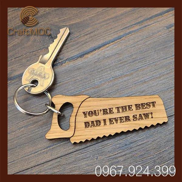 Cha luôn là người anh hùng trong mắt con, là người luôn ở bên, dìu dắt và che chở. Móc khóa gỗ khắc dòng chữ "You're the Best Dad I Ever Saw" là món quà đơn giản nhưng đầy ý nghĩa, thay bạn gửi gắm lời yêu thương và sự biết ơn sâu sắc đến người cha tuyệt vời nhất.